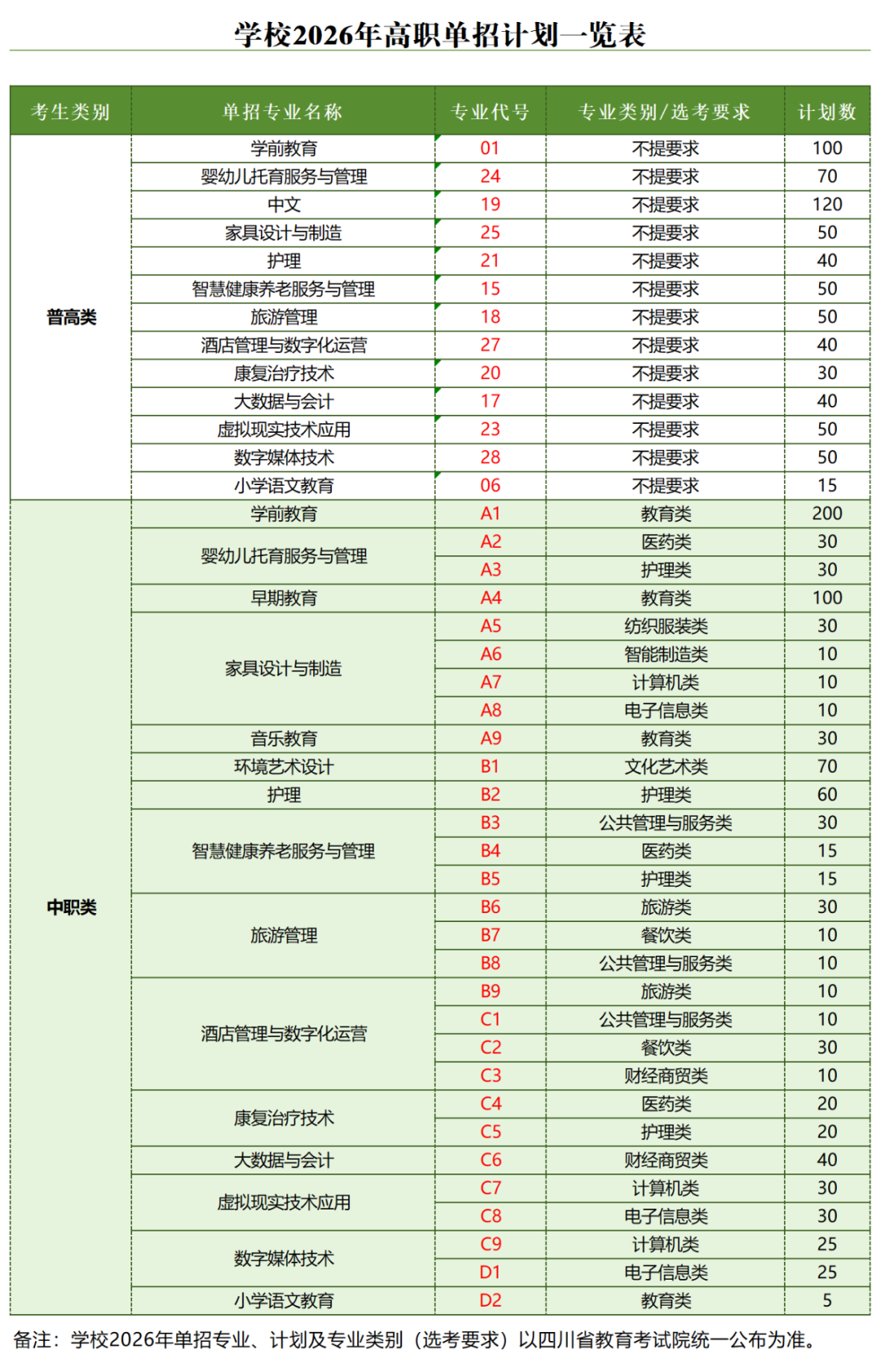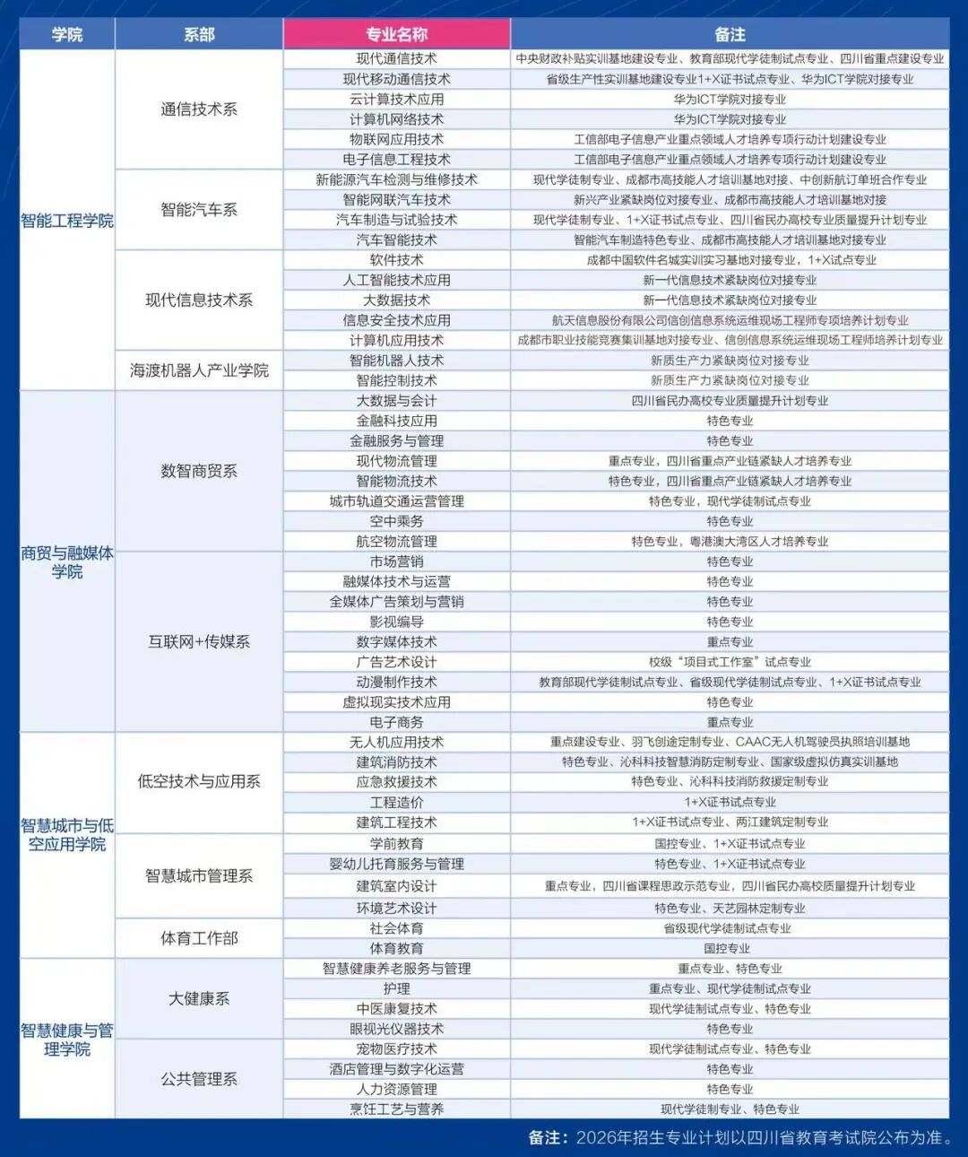 注:各招生专业及计划以四川省教育考试院审核公布为准。